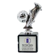 The Chunkie Football Boot & Ball Trophy is a sports trophy designed to recognise and celebrate your football achievement. This product is presented in mirror finish silver set on to a real marble base and is available in 4 sizes, with the tallest being 170mm. It is part of the exclusive Tower Trophies Chunkie Collection and brings together a great value football trophy with the all important heavyweight 'clunk' factor. Perfect as a Football Squad Trophy or as a Man of the Match Trophy.