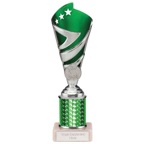 Hurricane Silver & Green Plastic Tube Cup | Marble Base | 225mm | G9