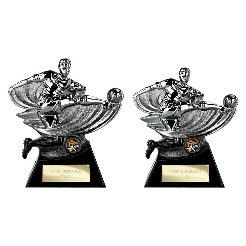 Power Strike Football Trophy | Heavyweight | Black & Silver | 180mm