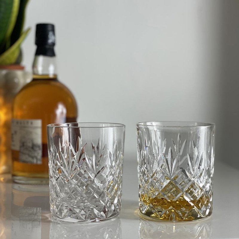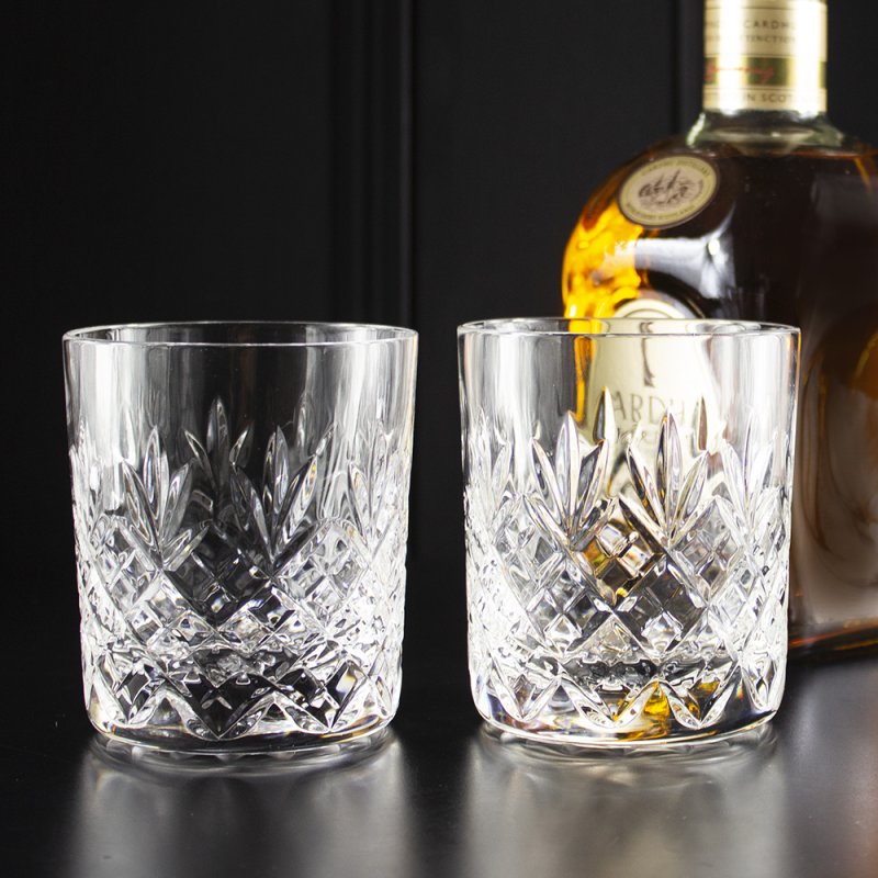 Royal Scot Edinburgh Crystal | Large Tumbler | Box of 2 | Personalised Box Inspired by the timeless elegance of Scotland's capital, these Edinburgh Large Crystal Tumblers are a stunning and practical addition to any drinks collection. Each tumbler is meticulously hand-cut with the iconic Edinburgh pattern, a design renowned for its depth and brilliance. This intricate pattern features a timeless combination of deep diamond cuts accented by elegant fan cuts that beautifully catches and refracts light. This detailing creates a dazzling sparkle, showcasing the artistry and exceptional skill of fine crystal cutting. The tumblers are crafted with a generous, comfortable shape and a heavy, solid base for superior stability. The generous size and comfortable weight make these tumblers supremely versatile. They are perfect for enjoying neat spirits, serving whisky on the rocks, or accommodating a large and refreshing Gin and Tonic or other long drinks. The heavy base and robust design enhance the ritual of drinking, ensuring a luxurious feel in the hand and adding a touch of classic Scottish sophistication to any occasion. The Edinburgh Crystal Large Tumbler is available individually, in pairs and in sets of four and six. Supplied in a luxurious, silk lined presentation box with gold foil blocking. Dimensions: Height: 95mm | 3.75 inches Diameter at top: 84mm | 3.3 inches Capacity: 33cl | 11oz
