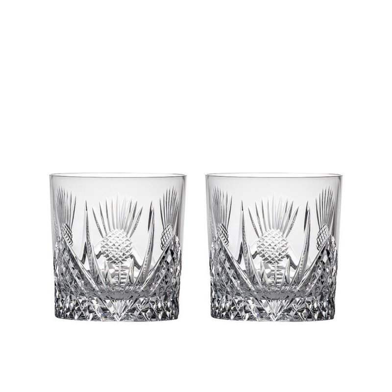 Royal Scot Scottish Thistle Crystal | Whisky Tumbler | Box of 2. Part of the Royal Scot Crystal, Scottish Heritage Collection the Scottish Thistle design is the most recognisable symbol of all things Scottish. Experty cut by hand in Britain, this range is supplied in pairs in a luxury midnight blue satin lined boxes. Many items can be purchased singlely in a branded gift box.