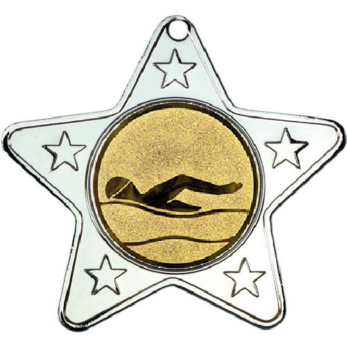 Swimming Star Shaped Medal | Silver | 50mm